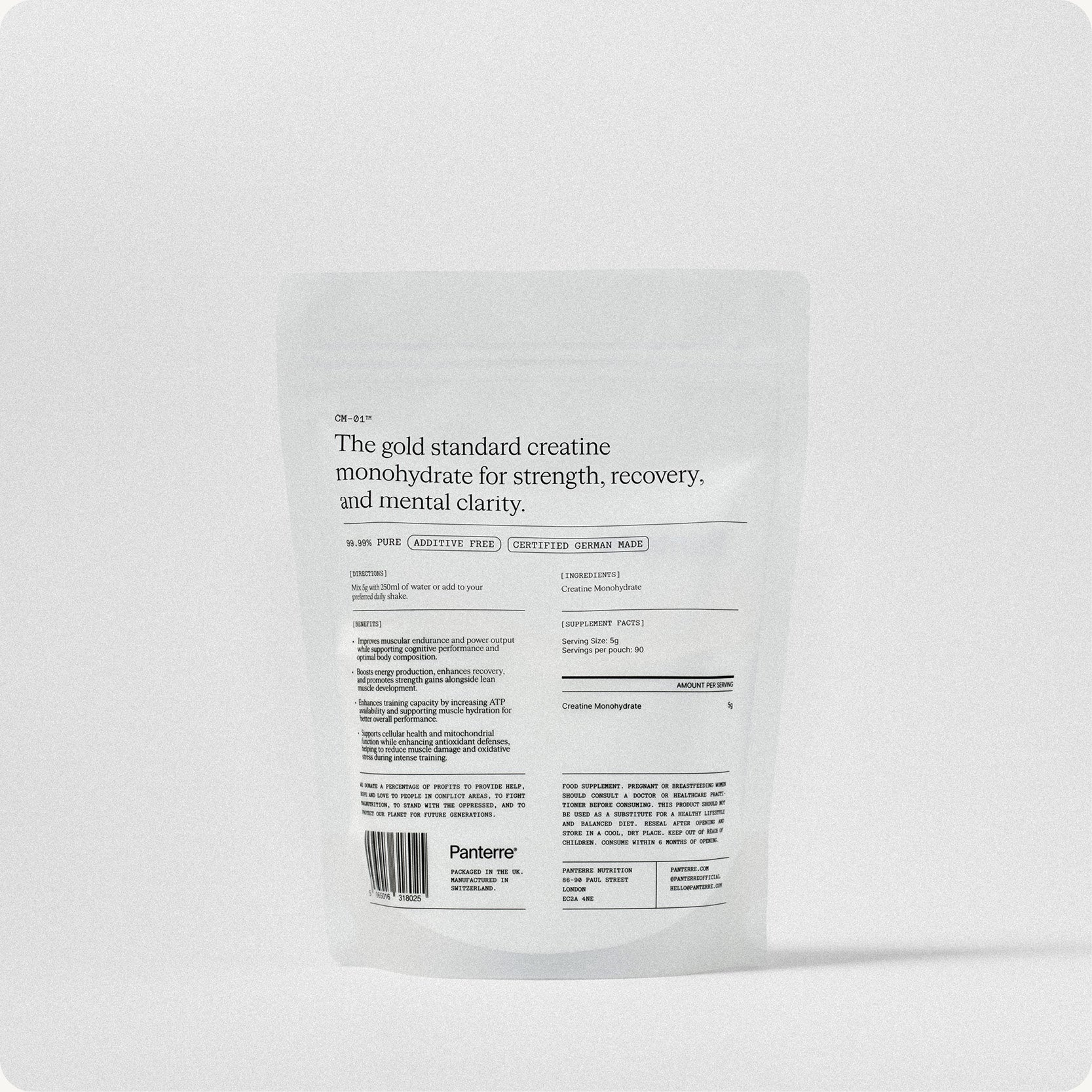 CM-01™ is 99.99% pure creatine monohydrate, free from any additives or fillers. The remaining 0.01% is creatinine - a harmless byproduct that naturally occurs in trace amounts during creatine production and is safely processed by the body.